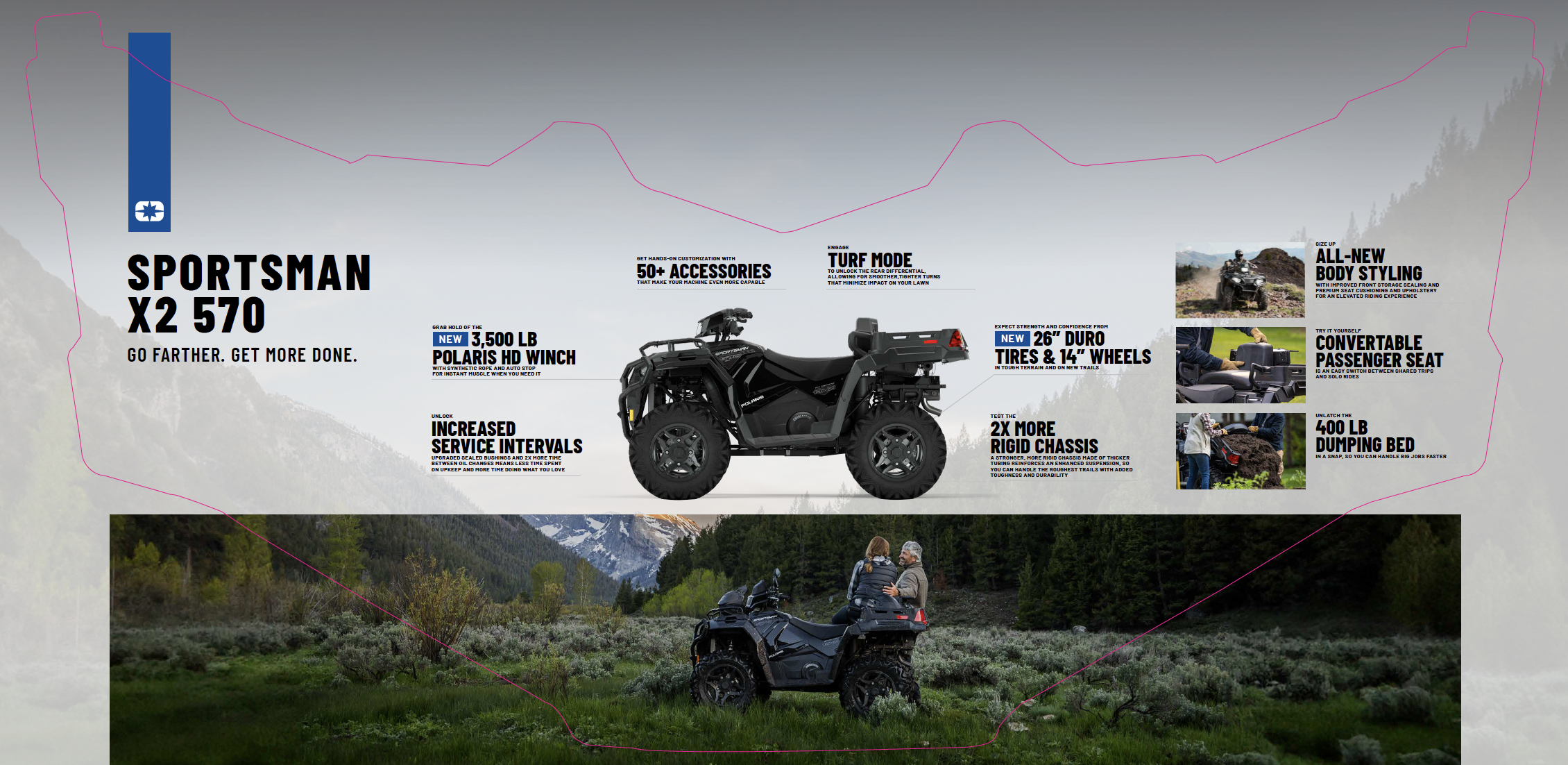 For the first time in 9 years, Polaris’ lineup of two-seater (“2-up”) Sportsman 570s – Touring, X2, and 6x6 models – were getting a refresh. With updates to core features and restyled look, the ‘new’, MY25 vehicle was ready to launch.